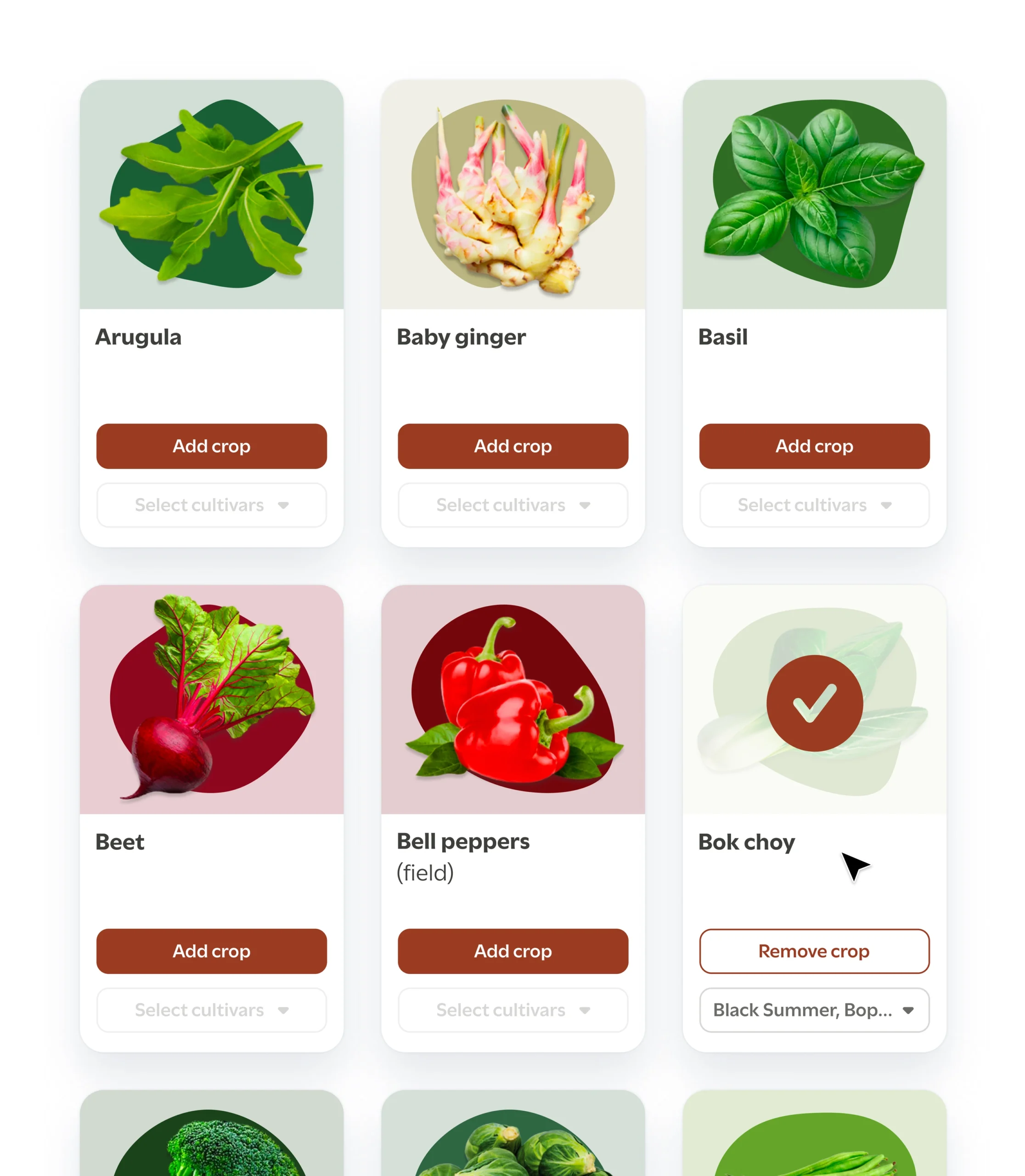 Select what you want to grow from more than 250 crops, including popular and specialty cultivars.