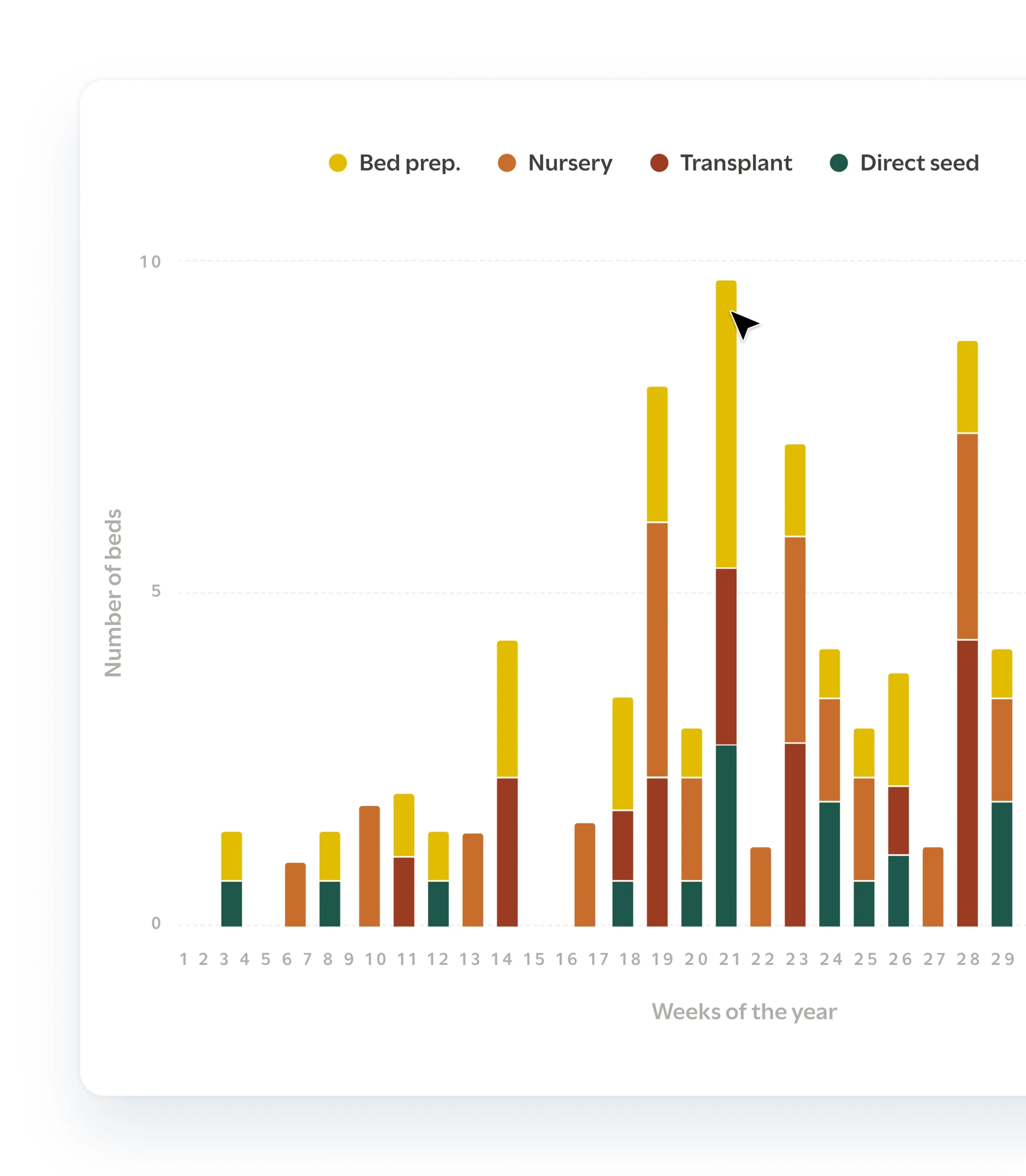 Preview the estimated workload required to realize your crop plan so that you can get the help you need, exactly when you need it.