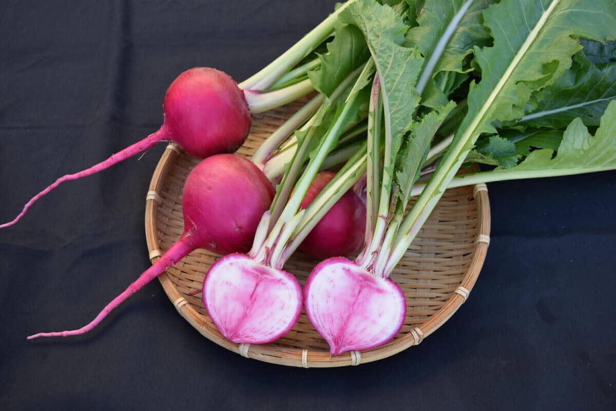- Scarlet/pink turnips with sweet, juicy white flesh.