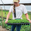 The steel-frame plug tray holder secures to a padded support harness so you can transplant with maximum efficiency.