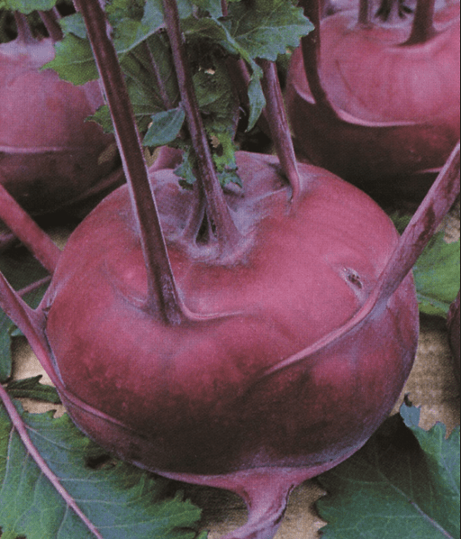 CULTURE: Kohlrabi prefers mild or cool weather. It is grown throughout the season in the Australian South, and during autumn and winter in the North. Sow 15 seeds/30cm, 6-12mm deep, in rows 30-45mm apart. Thin fresh market varieties to 10cm between plants. Thin storage varieties to 25cm between plants. For earliest crops start in flats or plug trays and transplant. Fertile, well-irrigated soil promotes rapid growth which makes for a sweeter flavored crop. Harvest when roots are about 50-75mm in diameter; 20cm diameter for storage varieties.