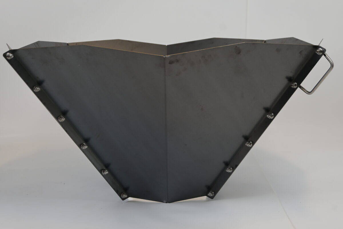 The flat pack cones made of 1.6mm 304 stainless or Corten steel can be effortlessly moved to the burn site