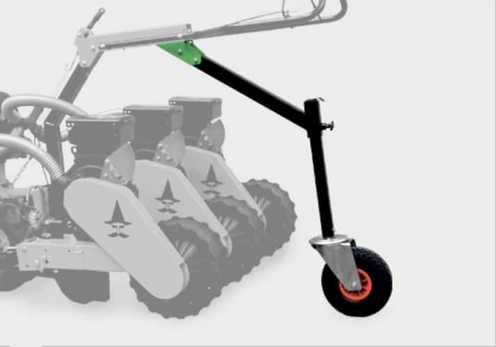 This rear-wheel, which is excluded during work, improves the transport phase and can also be used for headland maneuvering.