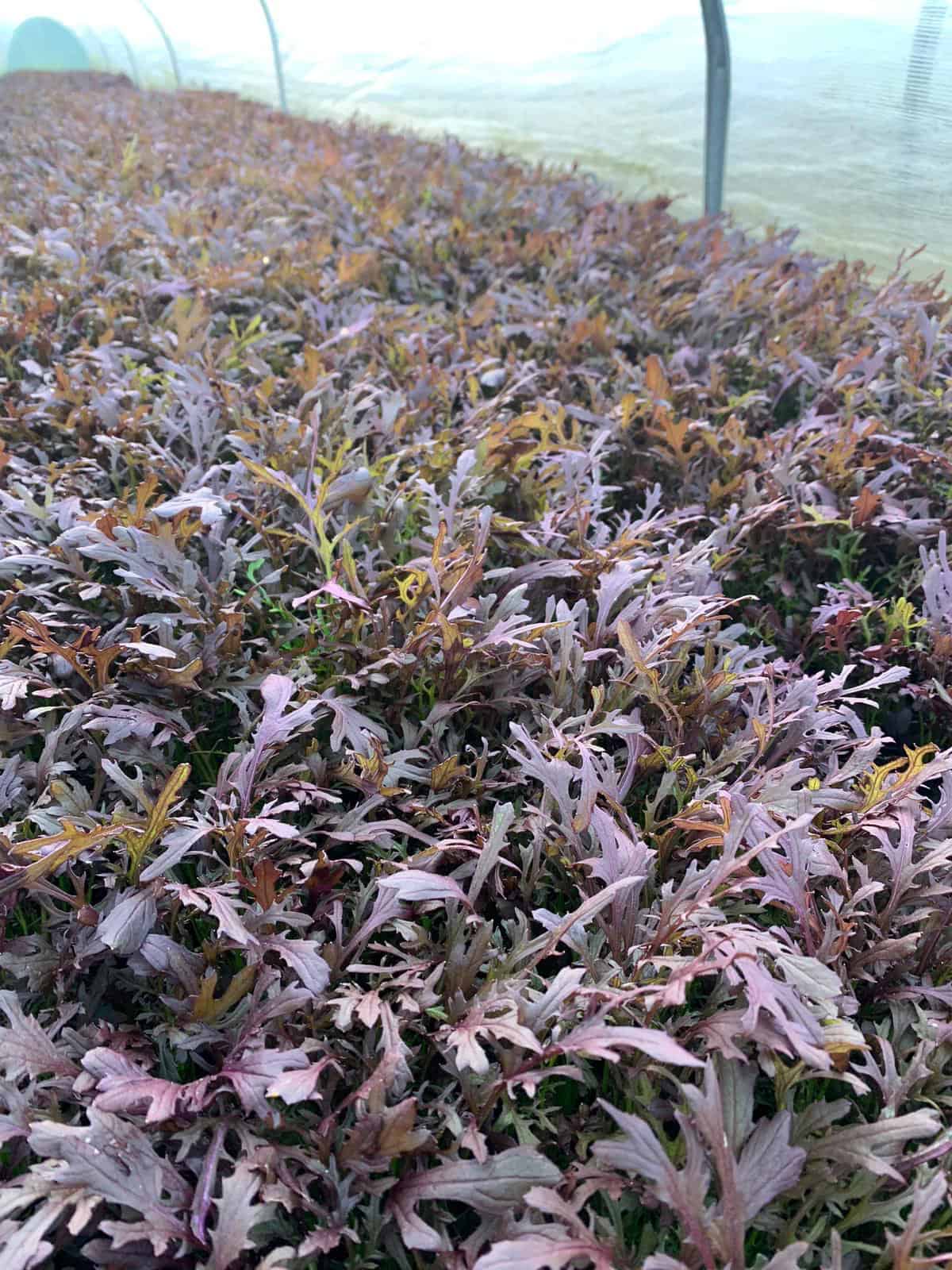 Lightly mustard, red and green, intricately lobed and ruffled leaves add flavour and loft to your salad mix. Slow-bolting. Darker red in cooler weather.