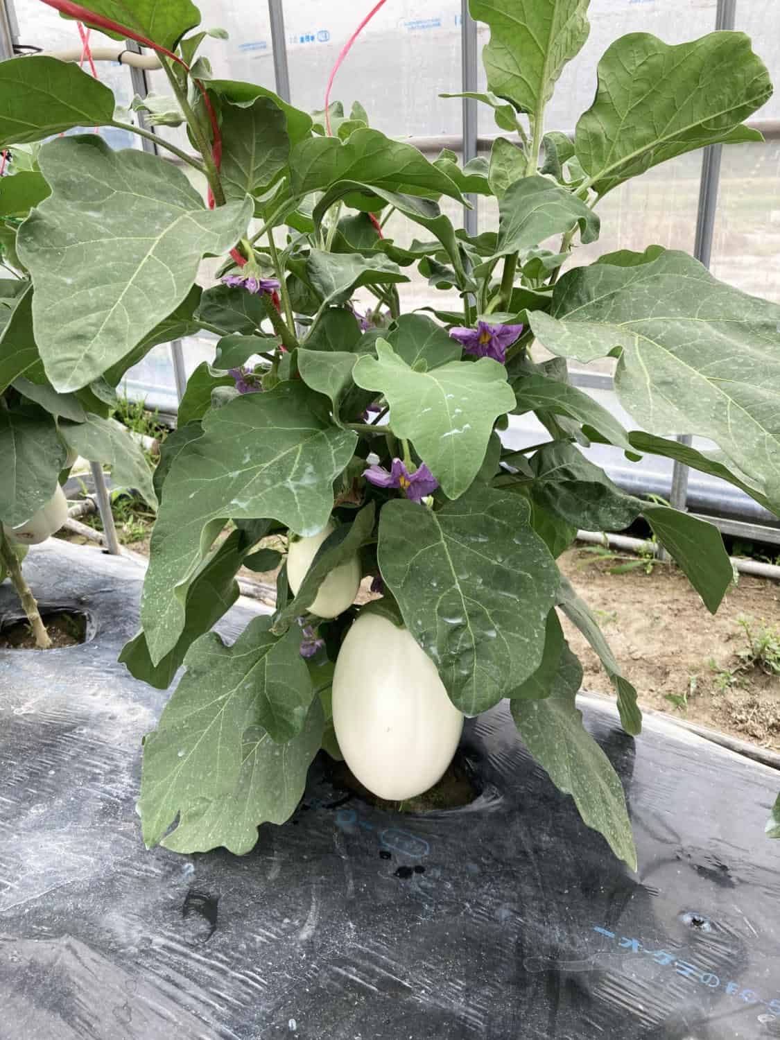 STAKING: Eggplants may be pruned and staked to keep the fruits straight.