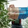 This ergonomic crate holder makes harvesting more comfortable.