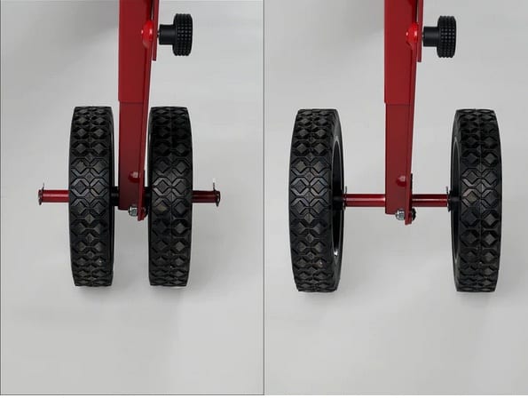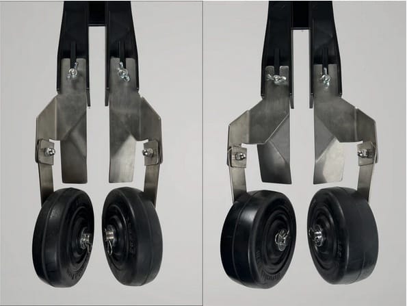 - Closing Wheels – Narrow closing wheel / plow kit (left side) allows 12 rows or tighter on a 75cm bed (with Guide Wheels slid in)