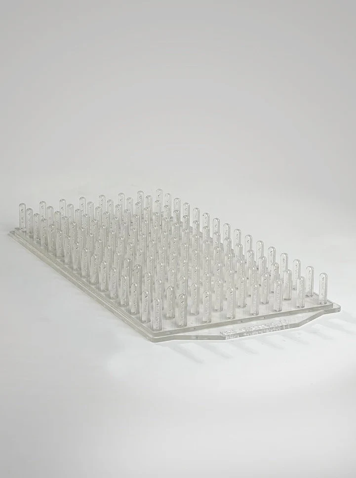 Clear high impact injection molded Dibble Board for Winstrip and most 1020 trays. Each Dibbler both dibbles and acts as a plug popper for Winstrip Trays. With 1020 trays, acts as a Dibbler.