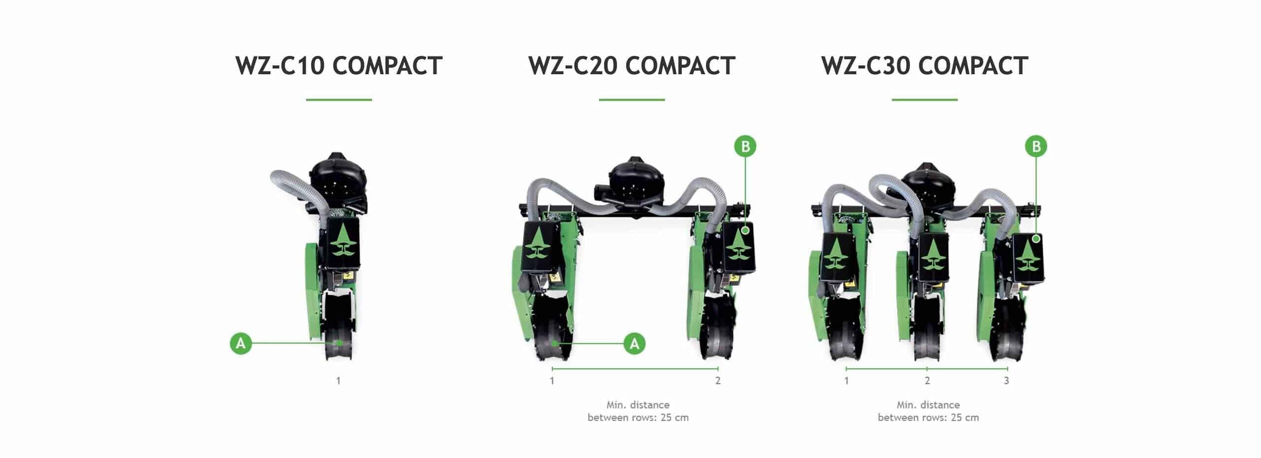 - The WZ-C Compact series consists of 1 up to a maximum of 3 sowing units and the distance between them goes from 25 cm up