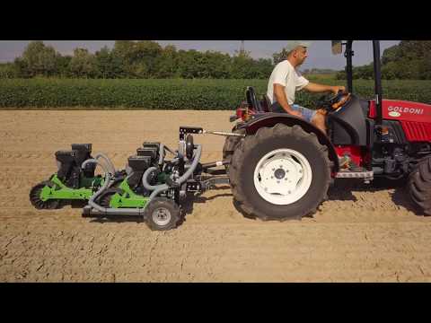 This modular vacuum precision planter consists of 4 to 8 sowing sowing units for tractors, 15-90hp. Particularly suitable for the sowing various types of vegetables: carrot, coriander, parsley, turnip, radish, salvia, cauliflower, onion, rape, lettuce, tomato, chicory, spinach and others